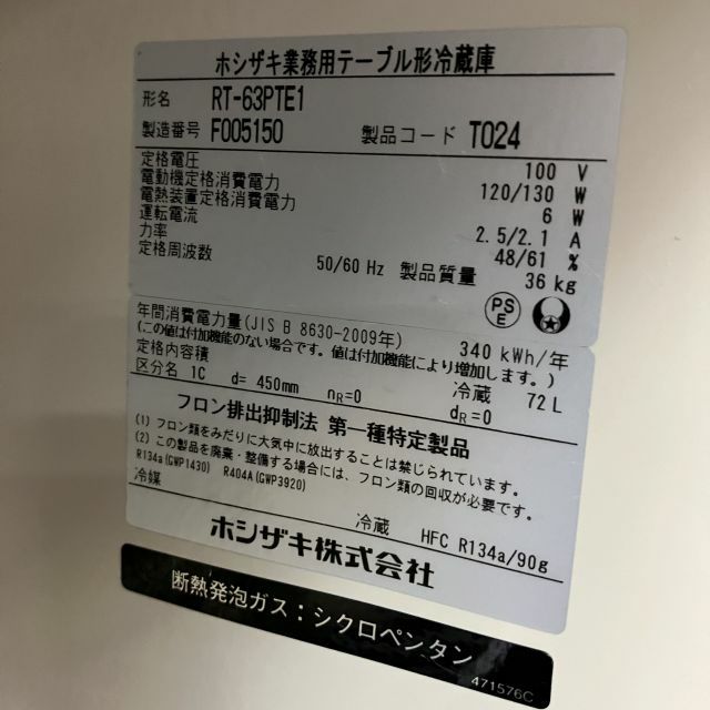 他の画像を見る 2016年製 ホシザキ 冷蔵コールドテーブル RT-63PTE1 大阪店 中古品 単相100V 定価 ¥ 444,400 のところ 販売価格 ¥ 46,200 税込 W630xD450xH800商品ランク:B カートに入れる お気に入りに登録する