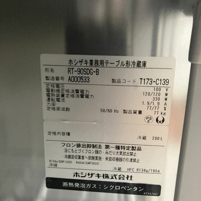 他の画像を見る 2021年製 ホシザキ パススルー冷蔵コールドテーブル RT-90SDG-B 大阪店 中古品 単相100V 定価 ¥ 798,600 のところ 販売価格 ¥ 110,000 税込 W900xD750xH800商品ランク:B カートに入れる お気に入りに登録する