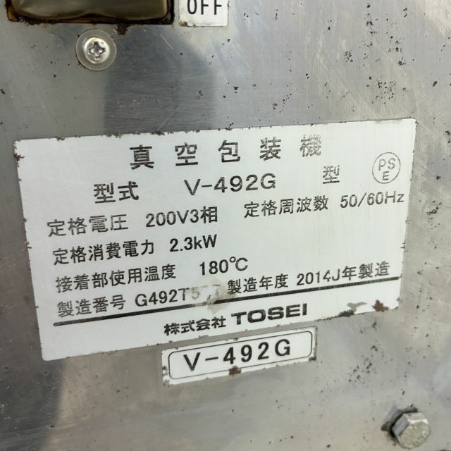 他の画像を見る 2014年製 TOSEI 真空包装機 V-492G ※備考欄必読 セール30%OFF 大阪店 中古品 三相200V 販売価格 ¥ 161,700 税込 通常価格¥"231000"のところ W540xD740xH470商品ランク:B カートに入れる お気に入りに登録する
