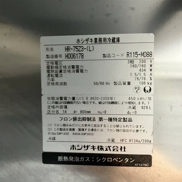 他の画像を見る 2018年製 ホシザキ 縦型冷蔵庫 HR-75Z3-(L) 大阪店 中古品 三相200V 定価 ¥ 982,300 のところ 販売価格 ¥ 121,000 税込 W750xD800xH1890商品ランク:B カートに入れる お気に入りに登録する