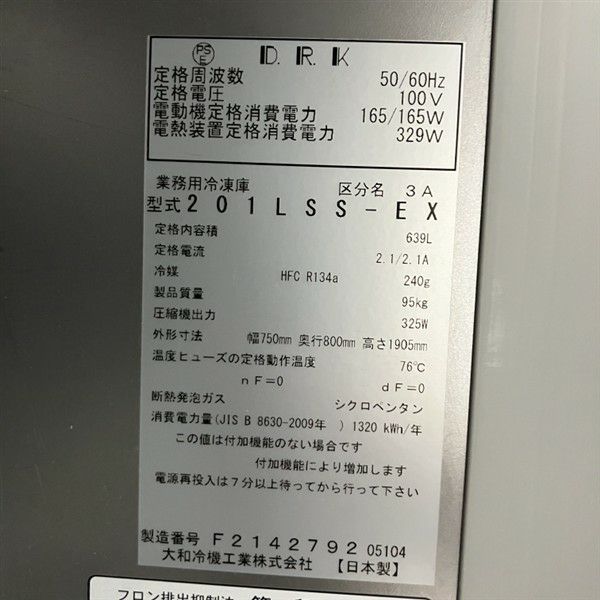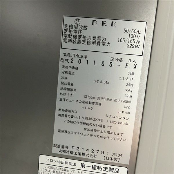 他の画像を見る 2024年製 大和冷機 縦型冷凍庫 201LSS-EX 大阪店 中古品 単相100V 販売価格 ¥ 198,000 税込 W750xD800xH1905商品ランク:B カートに入れる お気に入りに登録する