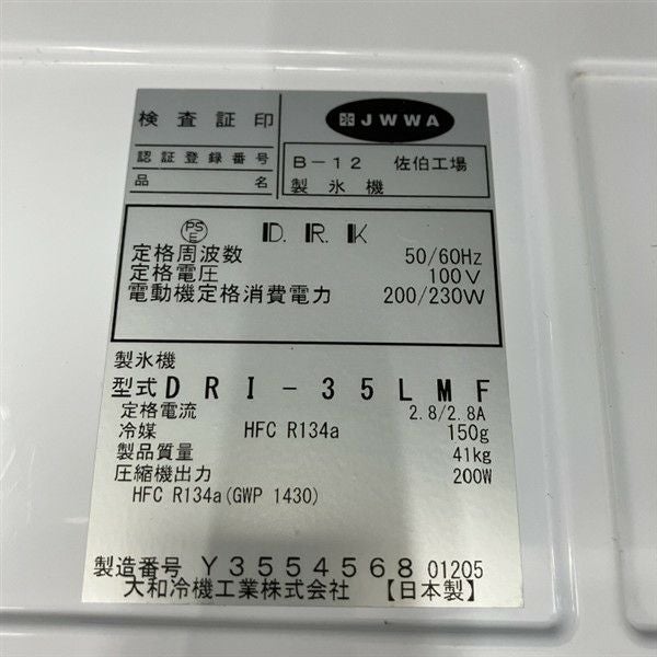 他の画像を見る 2025年製 大和冷機 35kg製氷機 DRI-35LMF 大阪店 中古品 単相100V 販売価格 ¥ 203,500 税込 W500xD450xH800商品ランク:B カートに入れる お気に入りに登録する