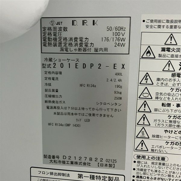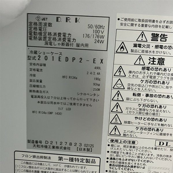 他の画像を見る 2025年製 大和冷機 リーチイン冷蔵ショーケース(2) 201EDP2-EX 大阪店 中古品 単相100V 販売価格 ¥ 297,000 税込 W600xD800xH1905商品ランク:B カートに入れる お気に入りに登録する