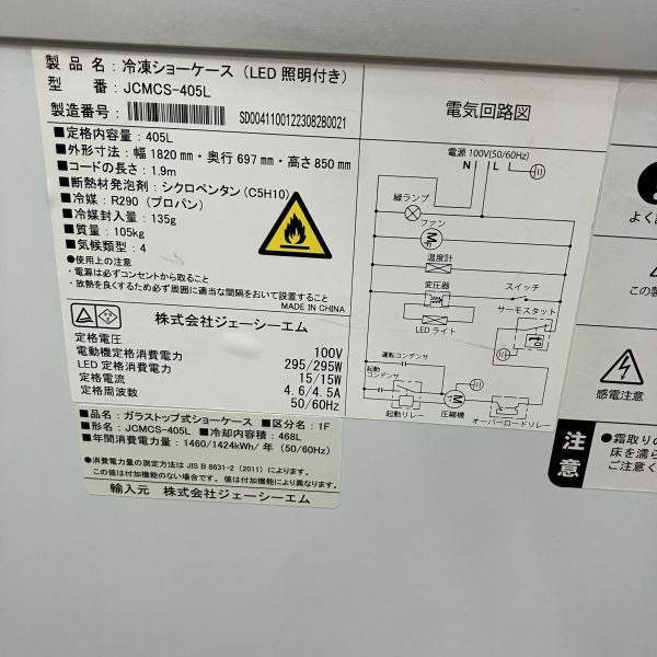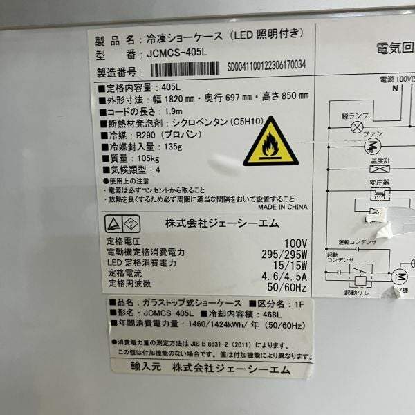 他の画像を見る 2023年製 JCM 冷凍ショーケース(2) JCMCS-405L 大阪店 中古品 単相100V 販売価格 ¥ 99,000 税込 W1820xD697xH850商品ランク:B カートに入れる お気に入りに登録する