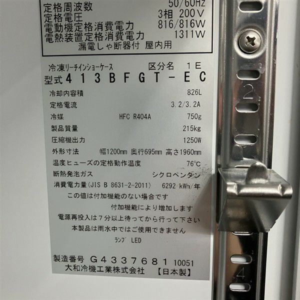 他の画像を見る 2021年製 大和冷機 リーチイン冷凍ショーケース 413BFGT-EC セール30%OFF 大阪店 中古品 三相200V 定価 ¥ 2,077,900 のところ 販売価格 ¥ 134,750 税込 通常価格¥"192500"のところ W1200xD650+45xH1960商品ランク:B カートに入れる お気に入りに登録する