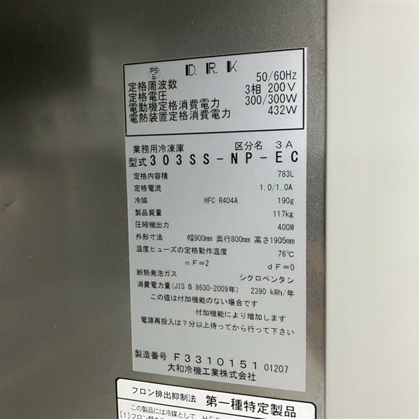他の画像を見る 2017年製 大和冷機 縦型冷凍庫 303SS-NP-EC 大阪店 中古品 三相200V 販売価格 ¥ 118,800 税込 W900xD800xH1905商品ランク:B カートに入れる お気に入りに登録する