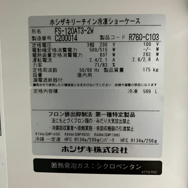 他の画像を見る 2023年製 ホシザキ リーチイン冷凍ショーケース FS-120AT3-2W セール30%OFF 大阪店 中古品 三相200V 定価 ¥ 1,865,600 のところ 販売価格 ¥ 164,010 税込 通常価格¥"234300"のところ W1200xD650xH1970商品ランク:A カートに入れる お気に入りに登録する