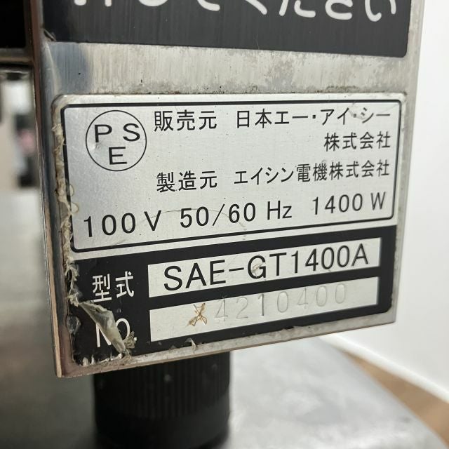 他の画像を見る 2017年製 エイシン コンベアートースター SAE-GT1400A 大阪店 中古品 単相100V 販売価格 ¥ 198,000 税込 W290xD480xH424商品ランク:B カートに入れる お気に入りに登録する
