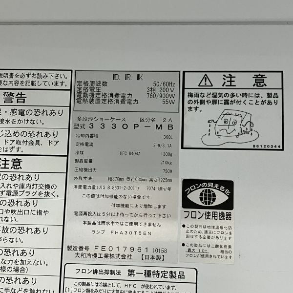 他の画像を見る 2018年製 大和冷機 オープン多段冷蔵ショーケース 333OP-MB 特価商品 大阪店 中古品 三相200V 定価 ¥ 921,800 のところ 販売価格 ¥ 138,600 税込 W870xD600xH1925商品ランク:A カートに入れる お気に入りに登録する