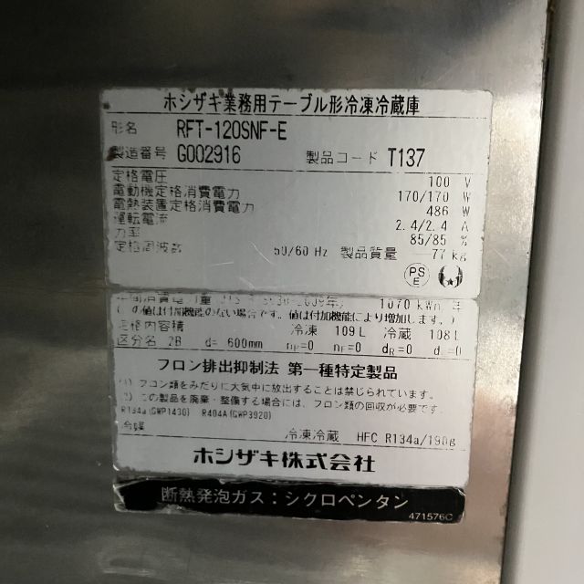 他の画像を見る 2017年製 ホシザキ 冷凍冷蔵コールドテーブル RFT-120SNF-E 大阪店 中古品 単相100V 販売価格 ¥ 136,400 税込 W1200xD600xH800商品ランク:B カートに入れる お気に入りに登録する