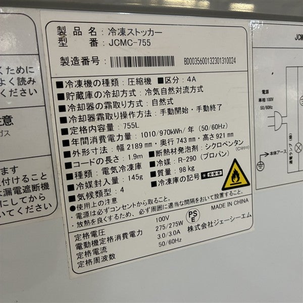 他の画像を見る 2023年製 JCM 冷凍ストッカー(1) JCMC-755 大阪店 中古品 単相100V 販売価格 ¥ 71,500 税込 SOLD OUT W2189xD743xH921商品ランク:B 詳細を見る お気に入りに登録する