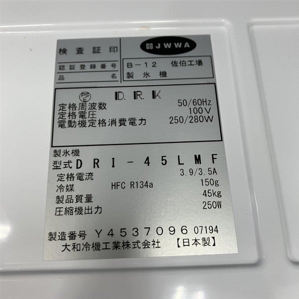 他の画像を見る 2024年製 大和冷機 45kg製氷機 DRI-45LMF 大阪店 中古品 単相100V 販売価格 ¥ 209,000 税込 SOLD OUT W630xD450xH800商品ランク:A 詳細を見る お気に入りに登録する