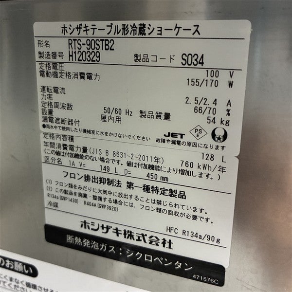 他の画像を見る 2017年製 ホシザキ テーブル形冷蔵ショーケース RTS-90STB2 大阪店 中古品 単相100V 定価 ¥ 257,400 のところ 販売価格 ¥ 77,000 税込 SOLD OUT W900xD450xH800商品ランク:B 詳細を見る お気に入りに登録する