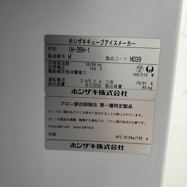 他の画像を見る 2018年製 ホシザキ 35kg製氷機 IM-35M-1 大阪店 中古品 単相100V 定価 ¥ 594,000 のところ 販売価格 ¥ 165,000 税込 SOLD OUT W500xD450xH800商品ランク:B 詳細を見る お気に入りに登録する