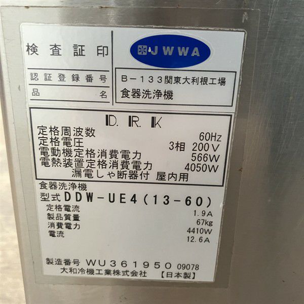 他の画像を見る 2018年製 大和冷機 食器洗浄機・アンダーカウンタータイプ DDW-UE4(13-60)※60Hz専用(西日本専用) 大阪店 中古品 三相200V 販売価格 ¥ 297,000 税込 SOLD OUT W600xD600xH800商品ランク:B 詳細を見る お気に入りに登録する