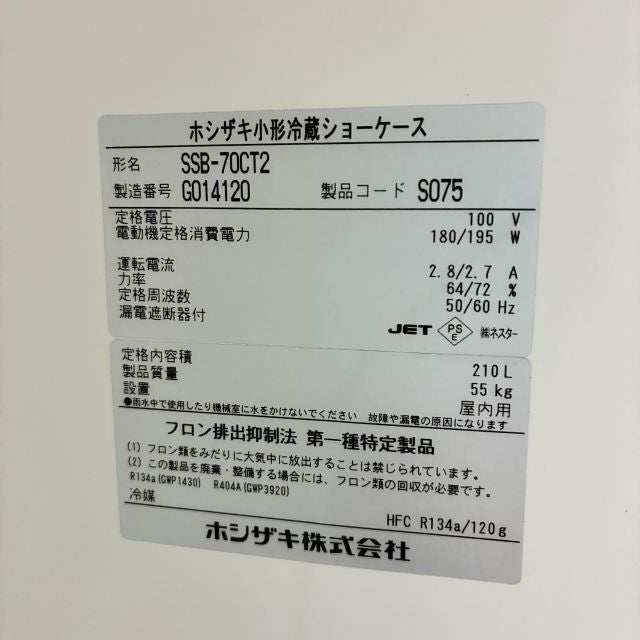 他の画像を見る 2017年製 ホシザキ 冷蔵ショーケース SSB-70CT2 大阪店 中古品 単相100V 定価 ¥ 235,400 のところ 販売価格 ¥ 71,500 税込 SOLD OUT W700xD450xH1410商品ランク:B 詳細を見る お気に入りに登録する