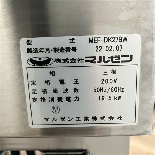 他の画像を見る 2022年製 マルゼン 2槽電気フライヤー MEF-DK27BW 特価商品 大阪店 未使用品 三相200V 定価 ¥ 1,513,600 のところ 販売価格 ¥ 242,000 税込 SOLD OUT W1300xD600xH800商品ランク:AA 詳細を見る お気に入りに登録する