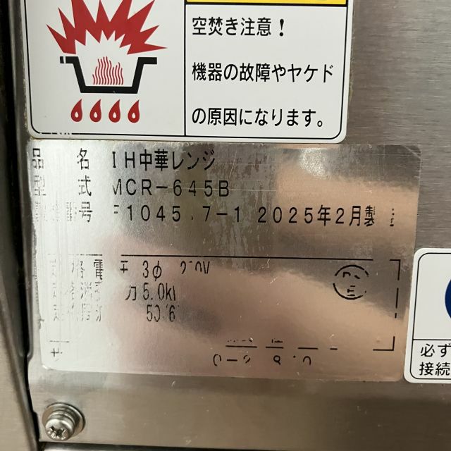 他の画像を見る 2025年製 ニチワ IH中華レンジ MCR-645B 大阪店 中古品 三相200V 販売価格 ¥ 198,000 税込 SOLD OUT W600xD750xH750+500商品ランク:A 詳細を見る お気に入りに登録する
