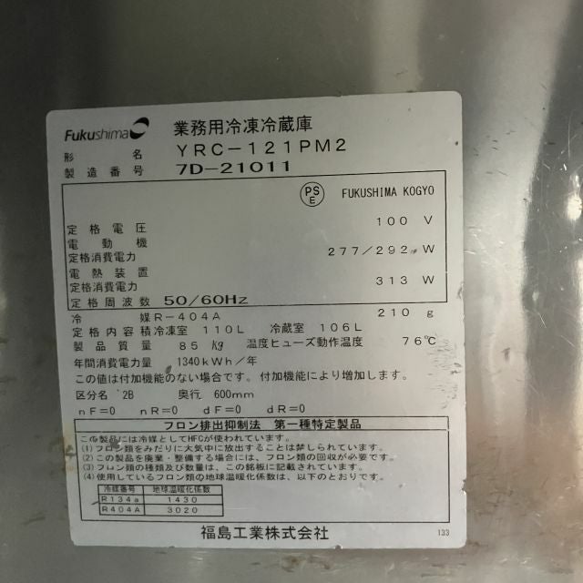 他の画像を見る 2017年製 フクシマガリレイ 冷凍冷蔵コールドテーブル YRC-121PM2 大阪店 中古品 単相100V 定価 ¥ 938,300 のところ 販売価格 ¥ 99,000 税込 SOLD OUT W1200xD600xH800商品ランク:B 詳細を見る お気に入りに登録する