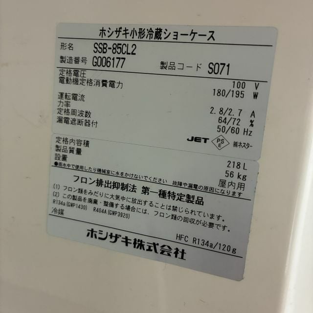 他の画像を見る 2017年製 ホシザキ 冷蔵ショーケース SSB-85CL2 大阪店 中古品 単相100V 定価 ¥ 232,100 のところ 販売価格 ¥ 60,500 税込 SOLD OUT W850xD550xH1080商品ランク:B 詳細を見る お気に入りに登録する