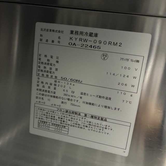 他の画像を見る 2020年製 北沢産業 冷蔵コールドテーブル KYRW-090RM2 大阪店 中古品 単相100V 定価 ¥ 722,700 のところ 販売価格 ¥ 99,000 税込 SOLD OUT W900xD750xH800商品ランク:B 詳細を見る お気に入りに登録する