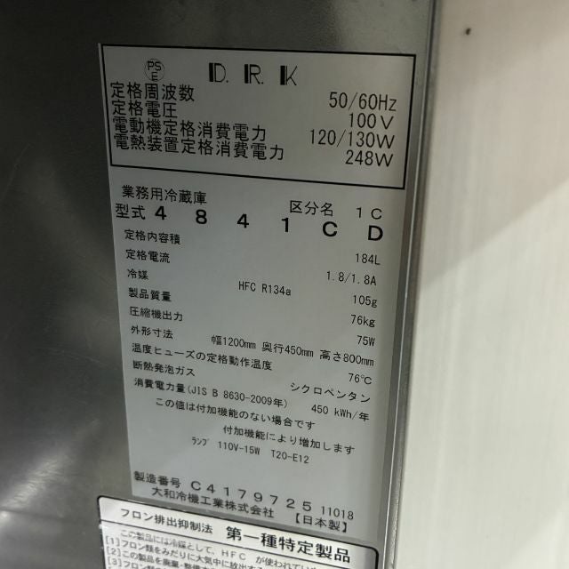 他の画像を見る 2018年製 大和冷機 冷蔵コールドテーブル 4841CD 大阪店 中古品 単相100V 定価 ¥ 532,400 のところ 販売価格 ¥ 77,000 税込 SOLD OUT W1200xD450xH800商品ランク:B 詳細を見る お気に入りに登録する