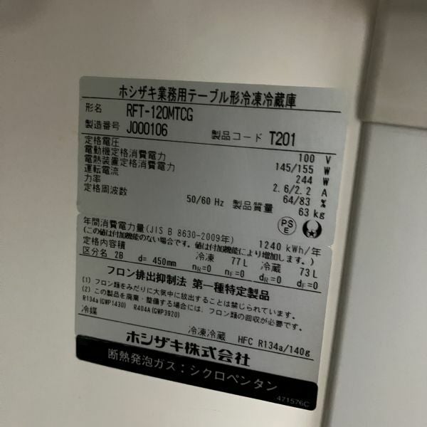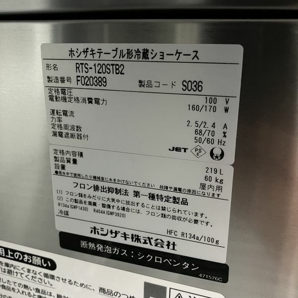 他の画像を見る 2019年製 ホシザキ テーブル形冷蔵ショーケース RTS-120STB2 大阪店 中古品 単相100V 定価 ¥ 284,900 のところ 販売価格 ¥ 94,600 税込 SOLD OUT W1200xD450xH800商品ランク:B 詳細を見る お気に入りに登録する