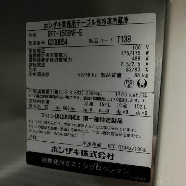 他の画像を見る 2017年製 ホシザキ 冷凍冷蔵コールドテーブル RFT-150SNF-E 大阪店 中古品 単相100V 販売価格 ¥ 137,500 税込 SOLD OUT W1500xD600xH800商品ランク:B 詳細を見る お気に入りに登録する