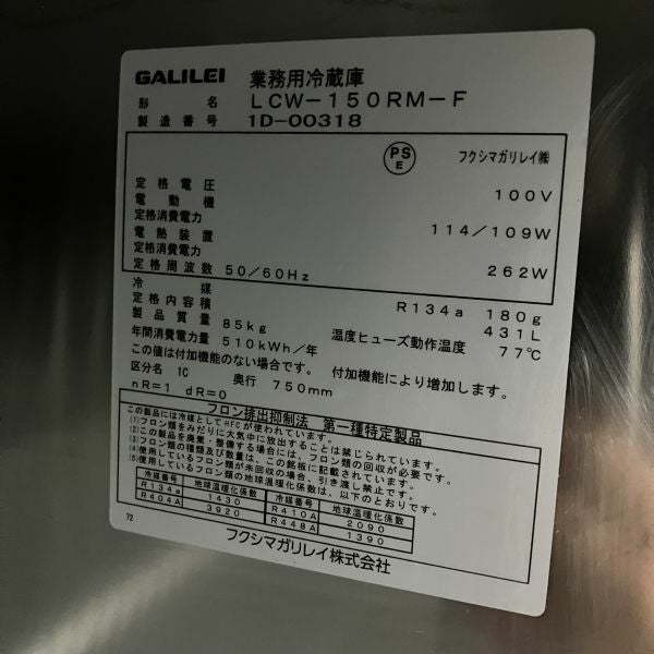 他の画像を見る 2021年製 フクシマガリレイ 冷蔵コールドテーブル LCW-150RM-F 大阪店 中古品 単相100V 定価 ¥ 910,800 のところ 販売価格 ¥ 105,600 税込 SOLD OUT W1500xD750xH800商品ランク:B 詳細を見る お気に入りに登録する