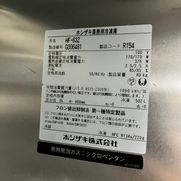 他の画像を見る 2017年製 ホシザキ 縦型冷凍庫 HF-63Z 大阪店 中古品 単相100V 定価 ¥ 1,036,200 のところ 販売価格 ¥ 110,000 税込 SOLD OUT W625xD800xH1890商品ランク:B 詳細を見る お気に入りに登録する