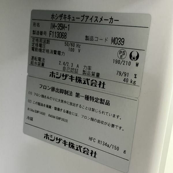 他の画像を見る 2016年製 ホシザキ 35kg製氷機 IM-35M-1 大阪店 中古品 単相100V 定価 ¥ 594,000 のところ 販売価格 ¥ 140,800 税込 SOLD OUT W500xD450xH800商品ランク:B 詳細を見る お気に入りに登録する