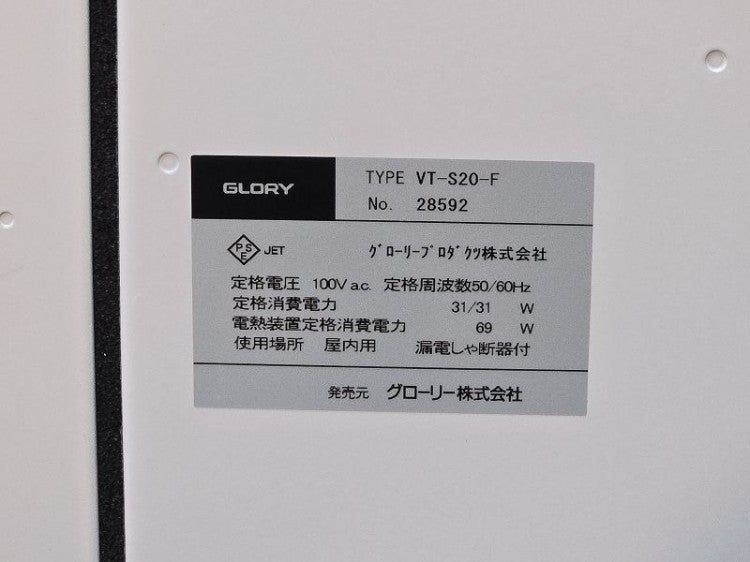 他の画像を見る 2024年製 グローリー 低額紙幣専用券売機 VT-S20-F 愛知店 中古品 単相100V 販売価格 ¥ 495,000 税込 W310xD250xH575商品ランク:B カートに入れる お気に入りに登録する