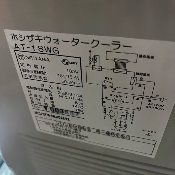 他の画像を見る 2020年製 ホシザキ ウォータークーラー AT-18WG 東京足立店 中古品 単相100V 販売価格 ¥ 45,100 税込 W300xD458xH610商品ランク:B カートに入れる お気に入りに登録する