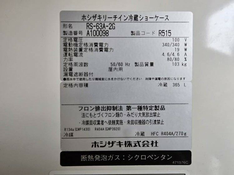 他の画像を見る 2022年製 ホシザキ 冷蔵ショーケース USB-63DL 愛知店 中古品 単相100V 定価 ¥ 412,500 のところ 販売価格 ¥ 110,000 税込 W630xD650xH1520商品ランク:B カートに入れる お気に入りに登録する