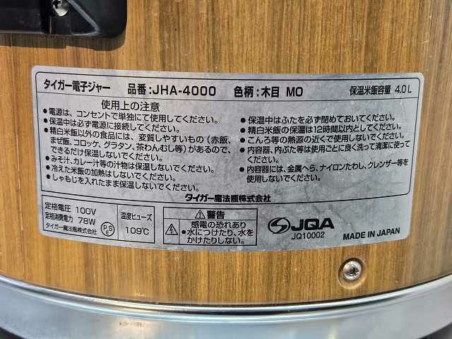 他の画像を見る 2003年製 タイガー 電子保温ジャー JHA-4000 ※備考欄必読 愛知店 中古品 単相100V 定価 ¥ 31,240 のところ 販売価格 ¥ 4,400 税込 SOLD OUT W435xD358xH270商品ランク:B 詳細を見る お気に入りに登録する