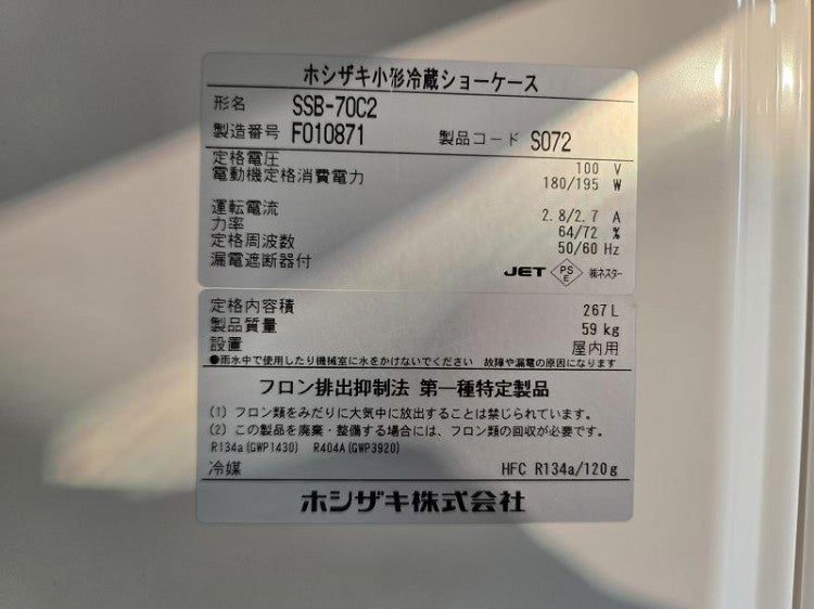 他の画像を見る 2016年製 ホシザキ 冷蔵ショーケース SSB-70C2 愛知店 中古品 単相100V 定価 ¥ 261,800 のところ 販売価格 ¥ 66,000 税込 W700xD550xH1410商品ランク:B カートに入れる お気に入りに登録する