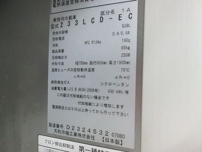他の画像を見る 2020年製 大和冷機 縦型冷蔵庫 233LCD-EC 愛知店 中古品 三相200V 定価 ¥ 964,700 のところ 販売価格 ¥ 138,600 税込 SOLD OUT W750xD800xH1905商品ランク:A 詳細を見る お気に入りに登録する
