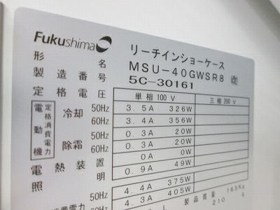 他の画像を見る 2015年製 フクシマガリレイ リーチイン冷蔵ショーケース MSU-090GHWSR 愛知店 中古品 単相100V 定価 ¥ 722,700 のところ 販売価格 ¥ 138,600 税込 SOLD OUT W900xD450xH1900商品ランク:B 詳細を見る お気に入りに登録する