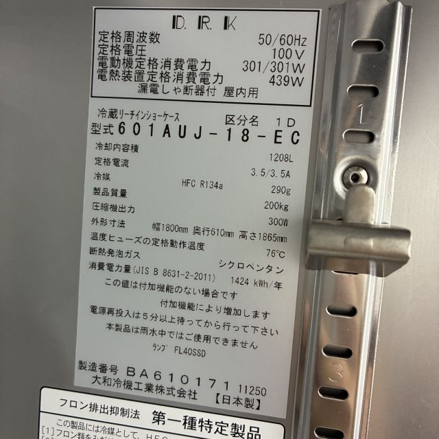 他の画像を見る 2020年製 大和冷機 リーチイン冷蔵ショーケース 601AUJ-18-EC 特価商品 大阪店 中古品 単相100V 販売価格 ¥ 211,750 税込 W1800xD610xH1865商品ランク:B カートに入れる お気に入りに登録する