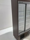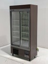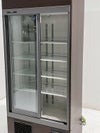 落着きのある木目柄の大型冷蔵ショーケースです