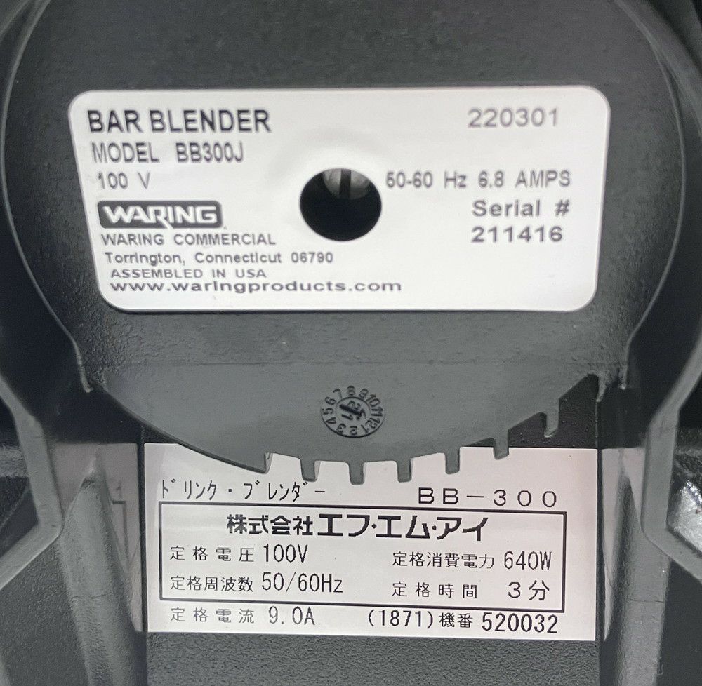 他の画像を見る 2022年製 FMI ワーリングフードブレンダー BB-300 東京町田店 中古品 単相100V 販売価格 ¥ 55,000 税込 W192xD212xH400商品ランク:A カートに入れる お気に入りに登録する