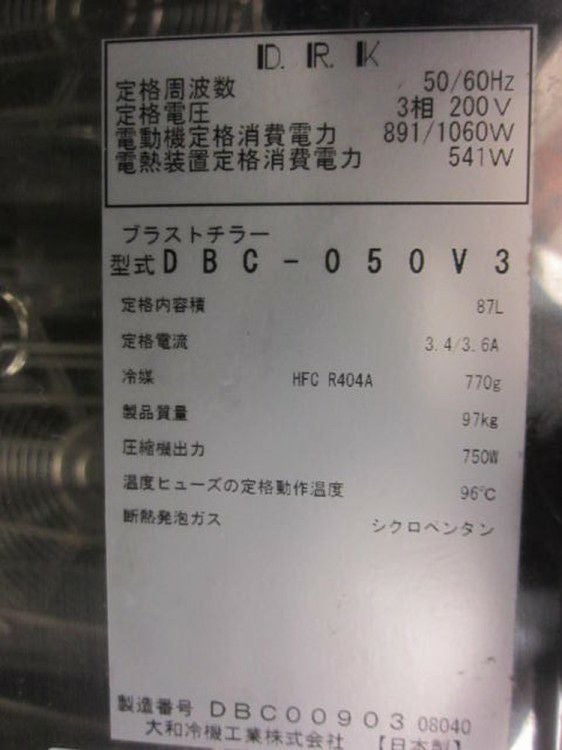 他の画像を見る 2020年製 大和冷機 ブラストチラー DBC-050V3 東京町田店 中古品 三相200V 販売価格 ¥ 544,500 税込 W750xD600xH800商品ランク:B カートに入れる お気に入りに登録する