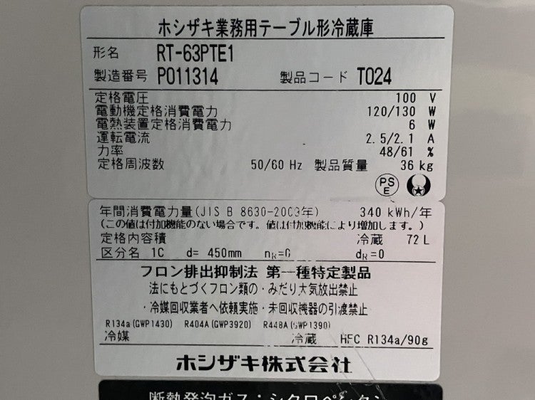 他の画像を見る 2024年製 ホシザキ 冷蔵コールドテーブル RT-63PTE1 東京町田店 中古品 単相100V 販売価格 ¥ 69,300 税込 W630xD450xH800商品ランク:B カートに入れる お気に入りに登録する