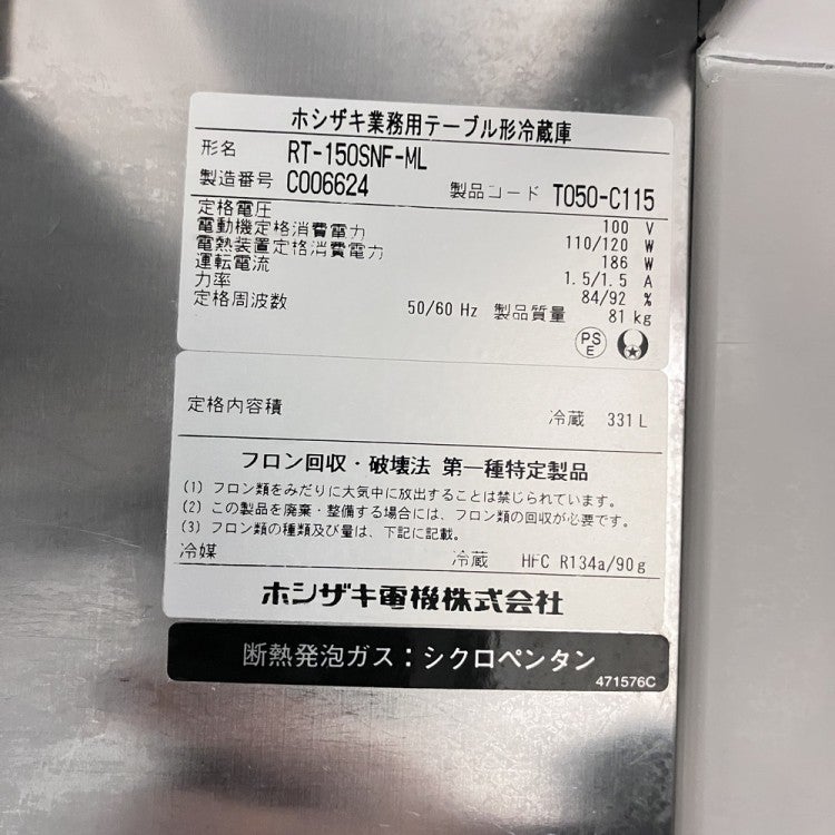 他の画像を見る 2020年製 ホシザキ 冷蔵コールドテーブル RT-150MNCG 東京町田店 中古品 単相100V 販売価格 ¥ 115,500 税込 SOLD OUT W1500xD600xH800商品ランク:B 詳細を見る お気に入りに登録する