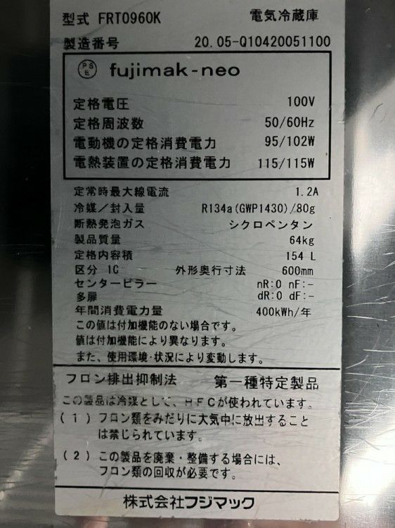 他の画像を見る 2020年製 フジマック 冷蔵コールドテーブル FRT0960K 東京町田店 中古品 単相100V 販売価格 ¥ 77,000 税込 SOLD OUT W900xD600xH800商品ランク:C 詳細を見る お気に入りに登録する