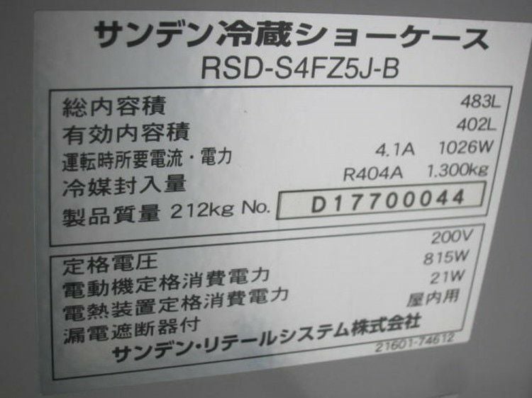 他の画像を見る 2017年製 サンデン 多段オープン冷蔵ショーケース RSD-S4FZ5J-B 東京町田店 中古品 三相200V 販売価格 ¥ 165,000 税込 SOLD OUT W1190xD600xH1900商品ランク:B 詳細を見る お気に入りに登録する