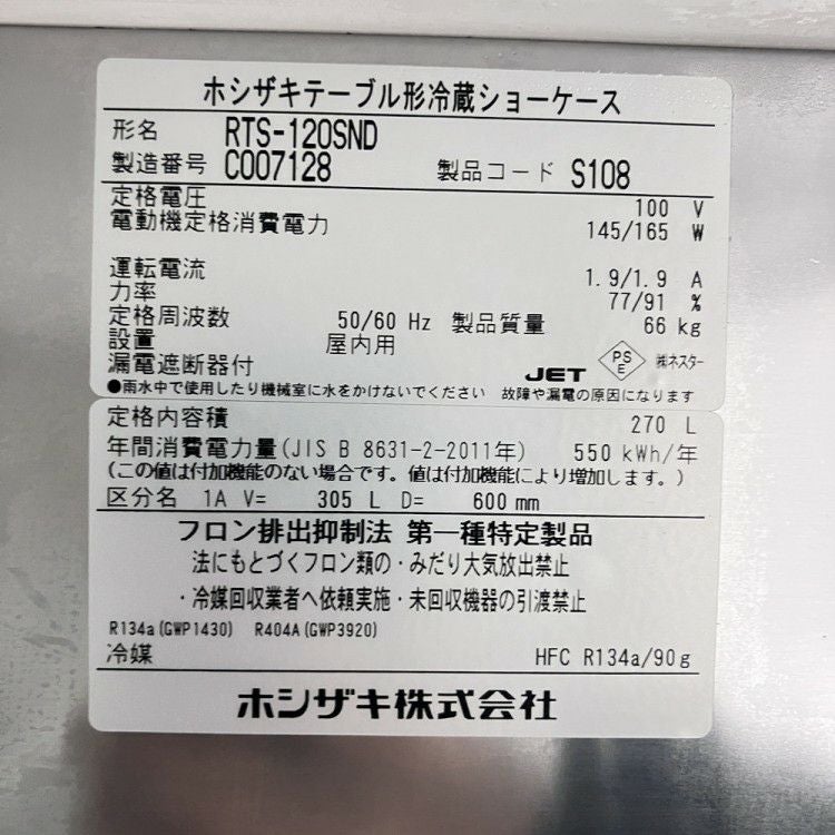 他の画像を見る 2023年製 ホシザキ テーブル形冷蔵ショーケース RTS-120SND 東京町田店 中古品 単相100V 販売価格 ¥ 104,500 税込 SOLD OUT W1200xD600xH800商品ランク:B 詳細を見る お気に入りに登録する