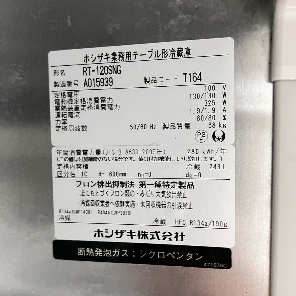 他の画像を見る 2021年製 ホシザキ 冷蔵コールドテーブル RT-120SNG 東京町田店 中古品 単相100V 販売価格 ¥ 110,000 税込 SOLD OUT W1200xD600xH800商品ランク:C 詳細を見る お気に入りに登録する