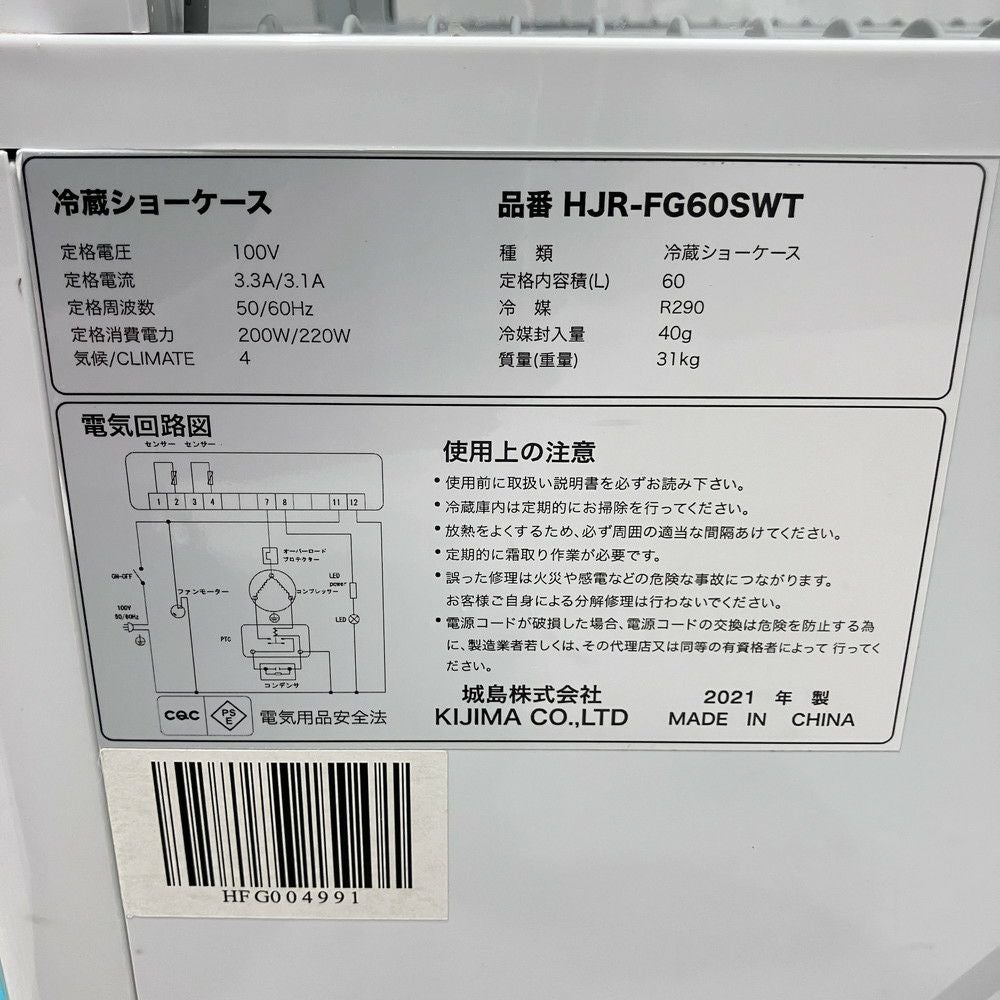 他の画像を見る 2021年製 Hijiru 4面ガラス冷蔵ショーケース HJR-FG60SWT 東京町田店 中古品 単相100V 販売価格 ¥ 22,000 税込 SOLD OUT W446xD400xH820商品ランク:A 詳細を見る お気に入りに登録する