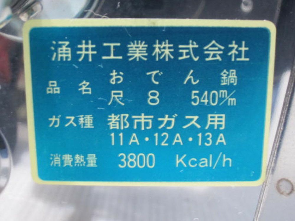 他の画像を見る 涌井工業 おでん鍋尺8 8ツ仕切 尺8 540m/m 東京町田店 中古品 都市ガス 販売価格 ¥ 44,000 税込 SOLD OUT W640xD380xH310商品ランク:A 詳細を見る お気に入りに登録する